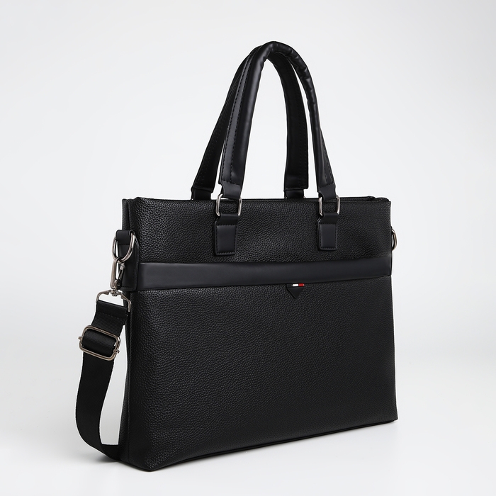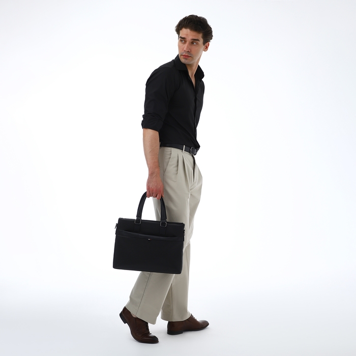 Сумка мужская деловая TEXTURA, 2 наружных кармана, цвет чёрный