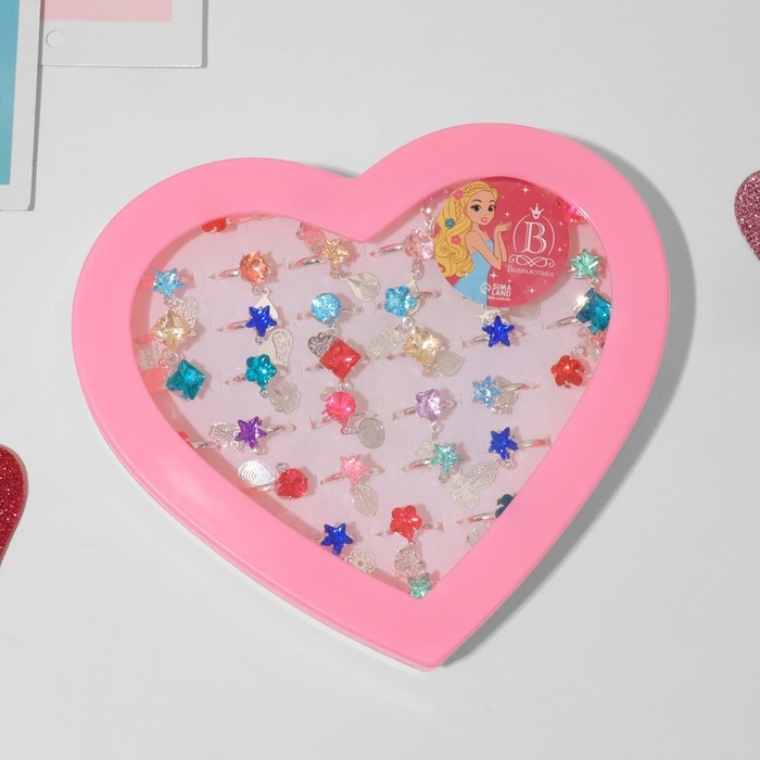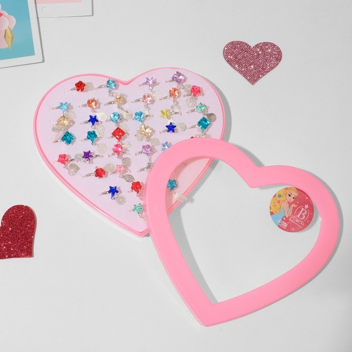 Кольца детские набор 36шт «Выбражулька» с подвеской, форма МИКС, цвет МИКС в серебре, б-р