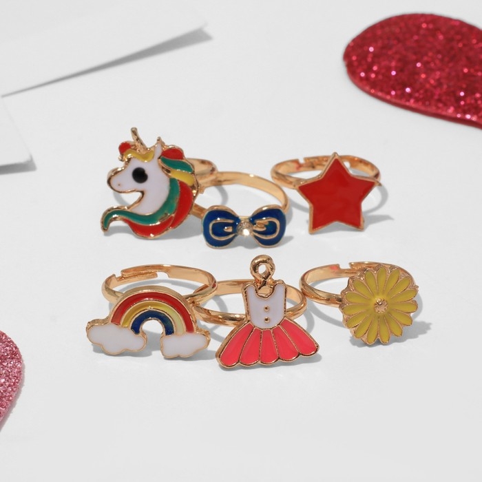 Кольца детские набор 36шт «Выбражулька» маленькая леди, форма МИКС, цвет МИКС в золоте, б-р