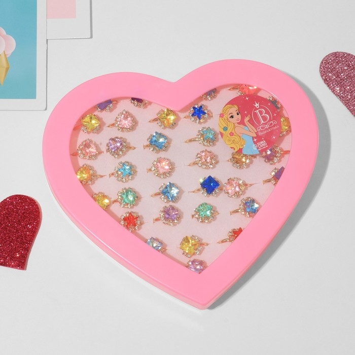 Кольца детские набор 36шт «Выбражулька» геометрия, форма МИКС, цвет МИКС в золоте, б-р