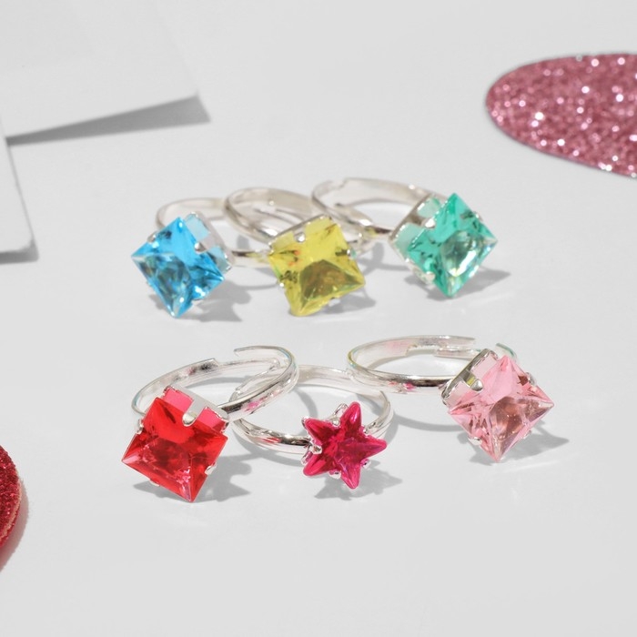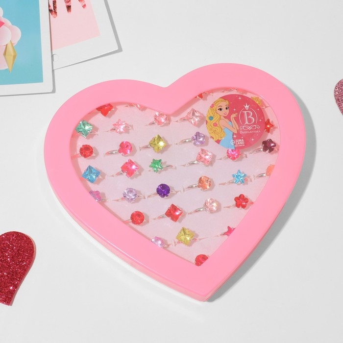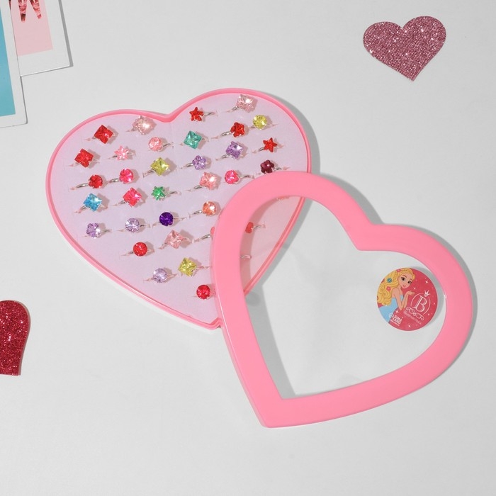 Кольца детские набор 36шт «Выбражулька», форма МИКС, цвет МИКС в серебре, б-р