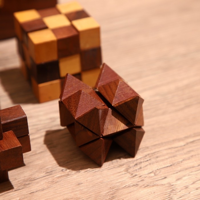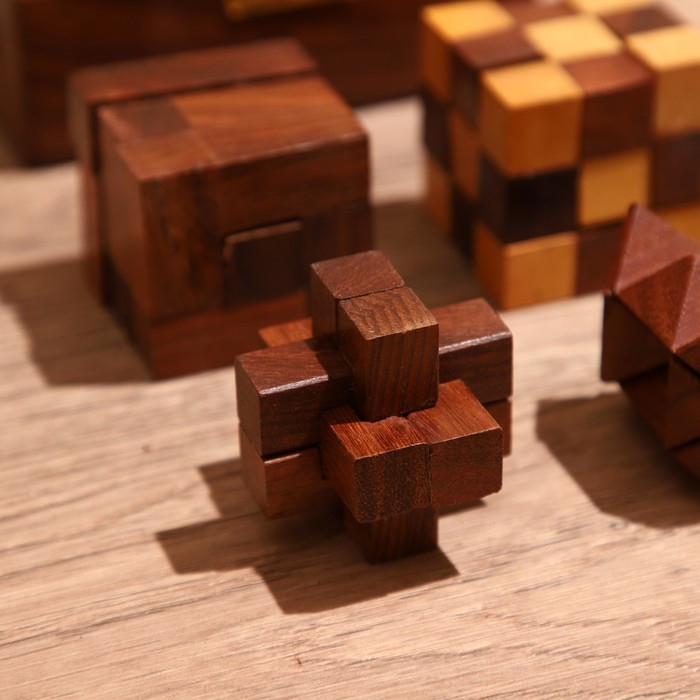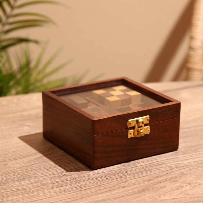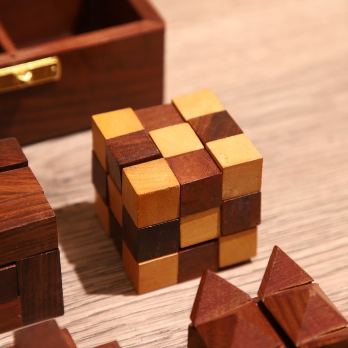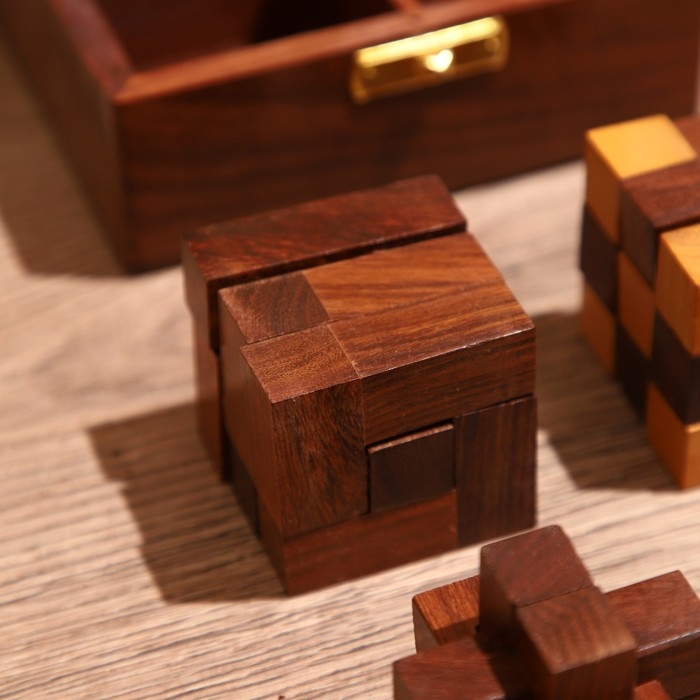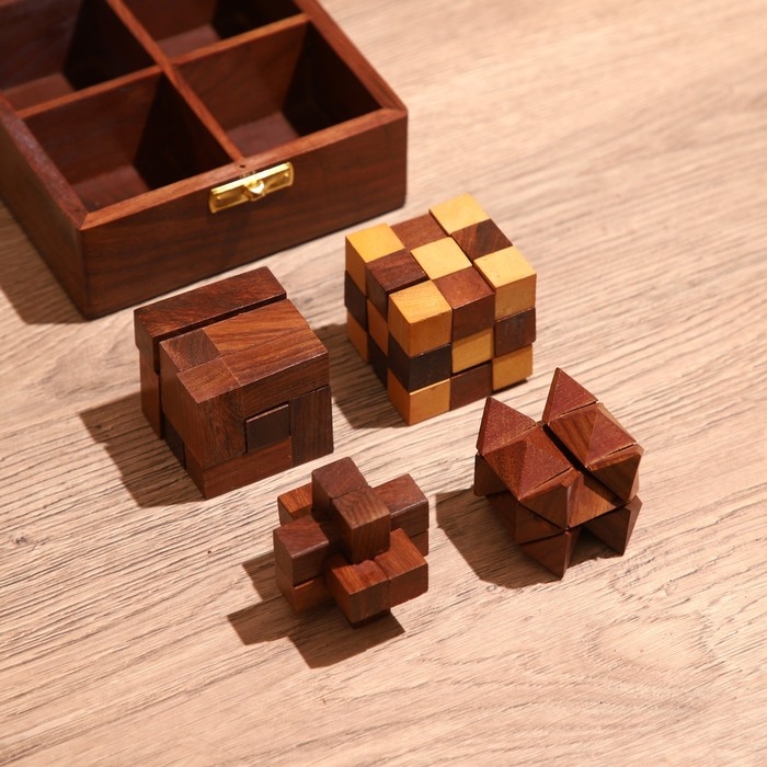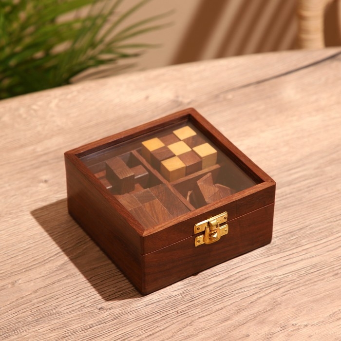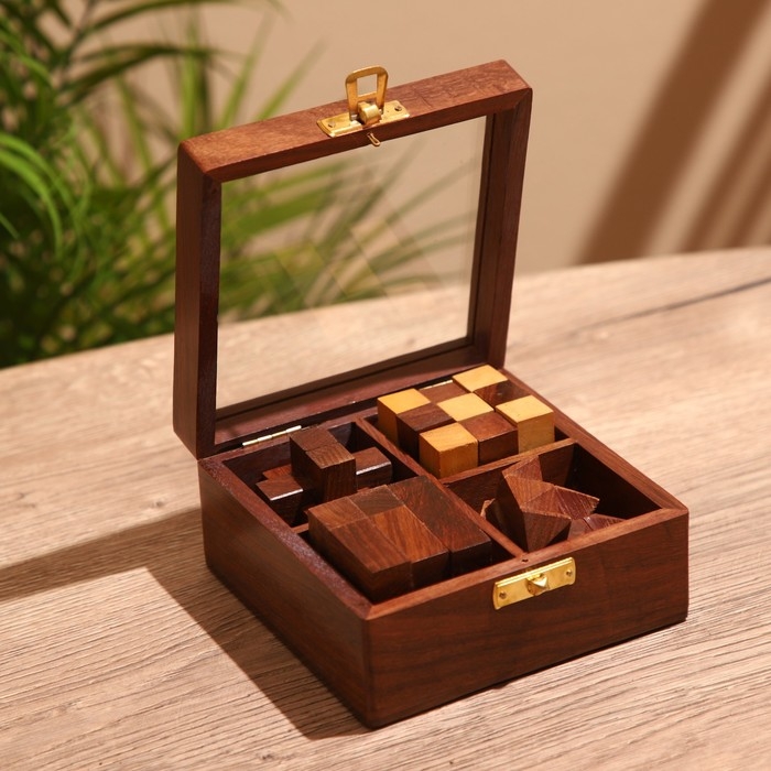 Головоломки в шкатулке (набор 4 шт) 12х13х6 см, дерево шишам