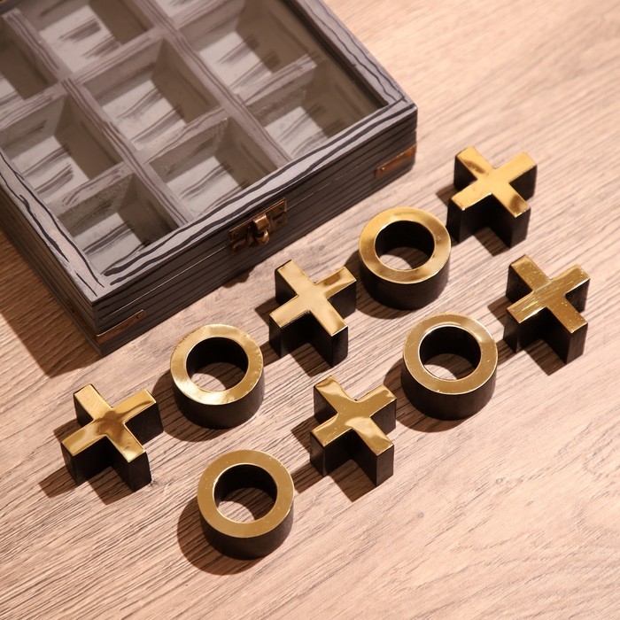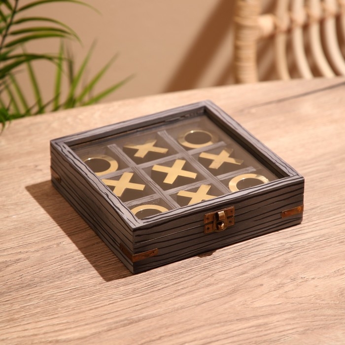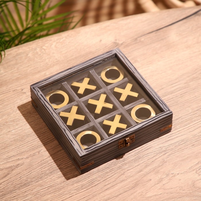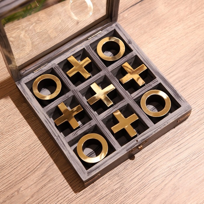 Игра настольная "Крестики-нолики" 18х18 см, манговое дерево, латунь