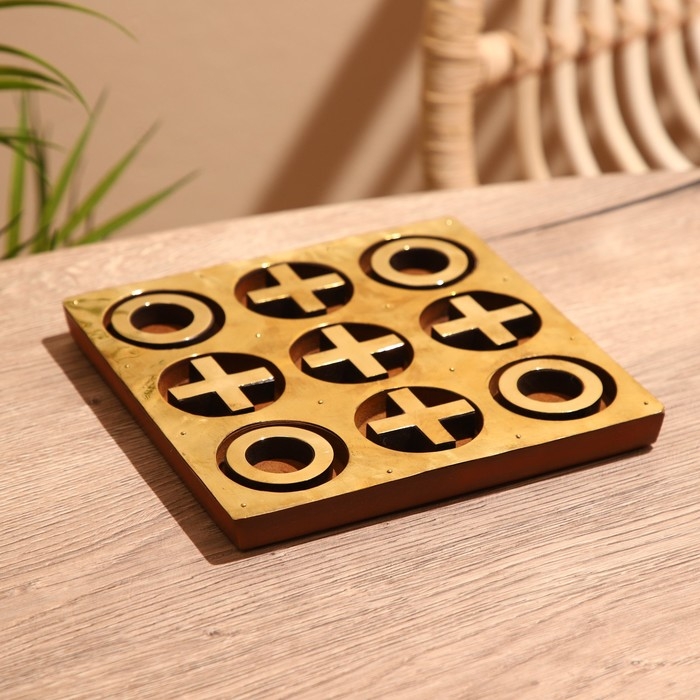 Игра настольная "Крестики-нолики" 18х18 см, манговое дерево, латунь
