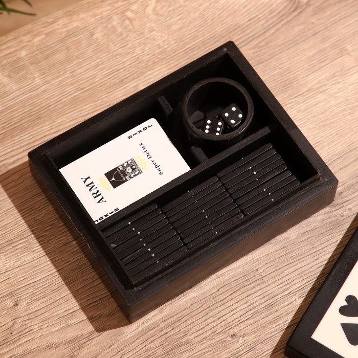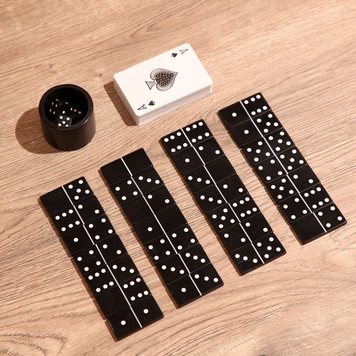 Игра настольная 3в1 (домино + кубики + карты) полирезин, МДФ