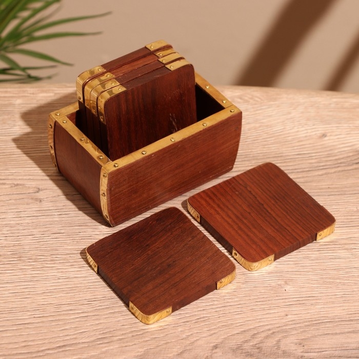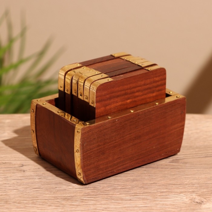 Подставки под горячее (набор 6 шт) 10х6,5х7 см, дерево шишам