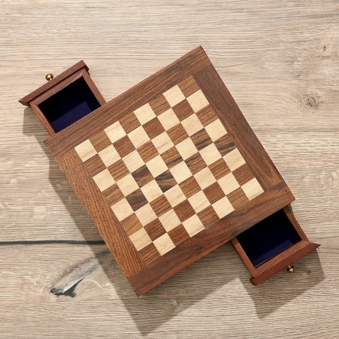 Шахматы нескладные с выдвижными ящичками, доска 20х20 см, дерево шишам