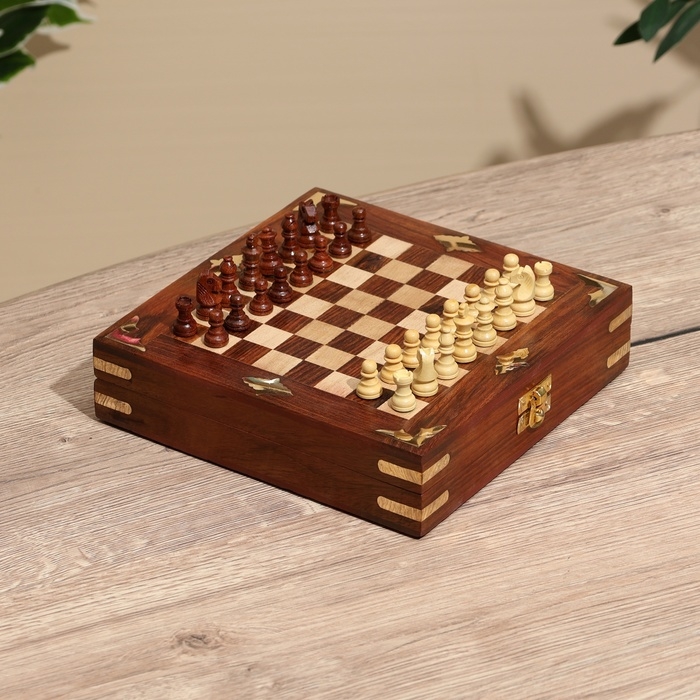 Шахматы складные, доска 20х20 см, дерево шишам