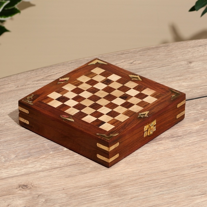 Шахматы складные, доска 20х20 см, дерево шишам – замечательный подарок для любителя этой сложной тактической игры.