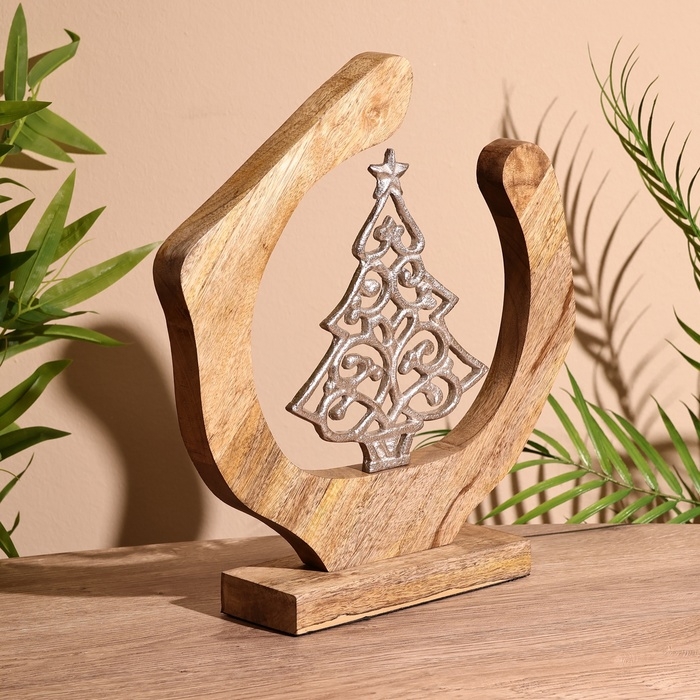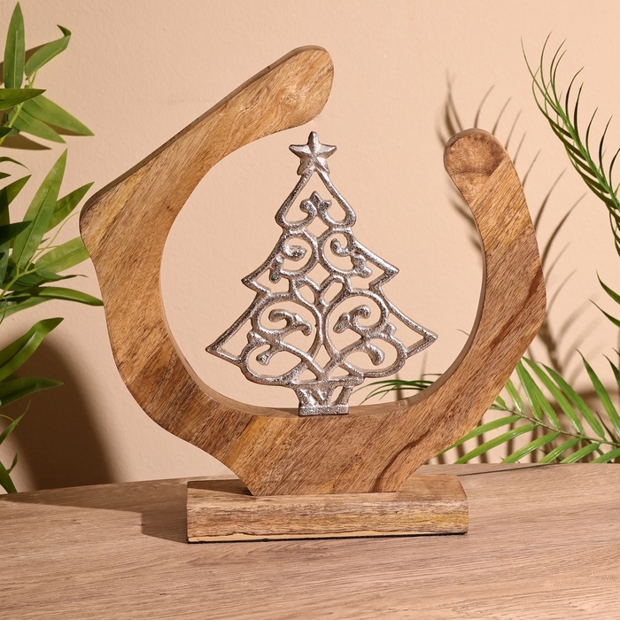 Сувенир интерьерный в деревянном кольце "Ёлочка" 25х8х28 см