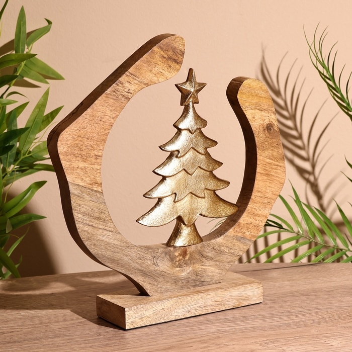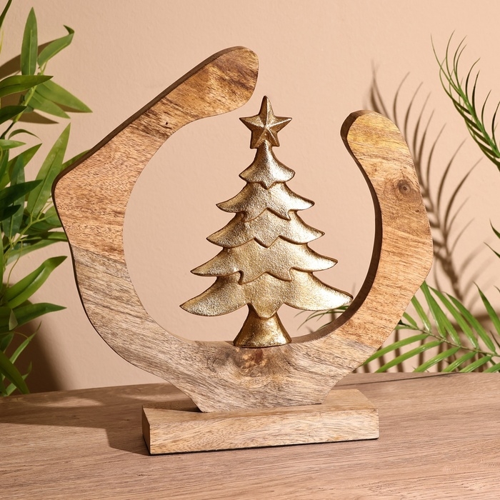 Сувенир интерьерный в деревянном кольце "Ёлочка" 30х8х33 см