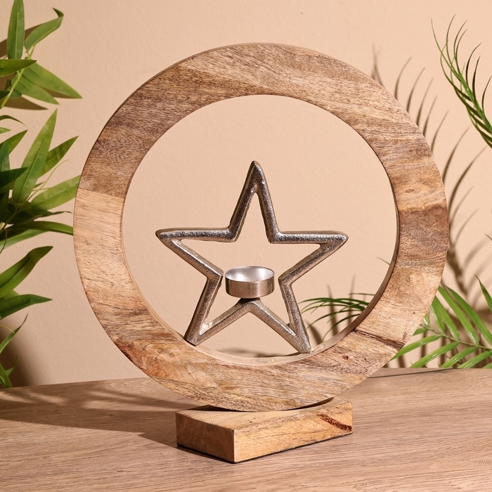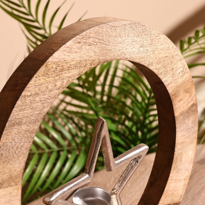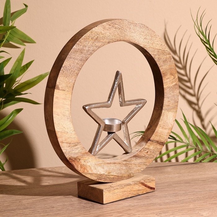 Подсвечник в деревянном кольце "Звезда" 30х8х33 см