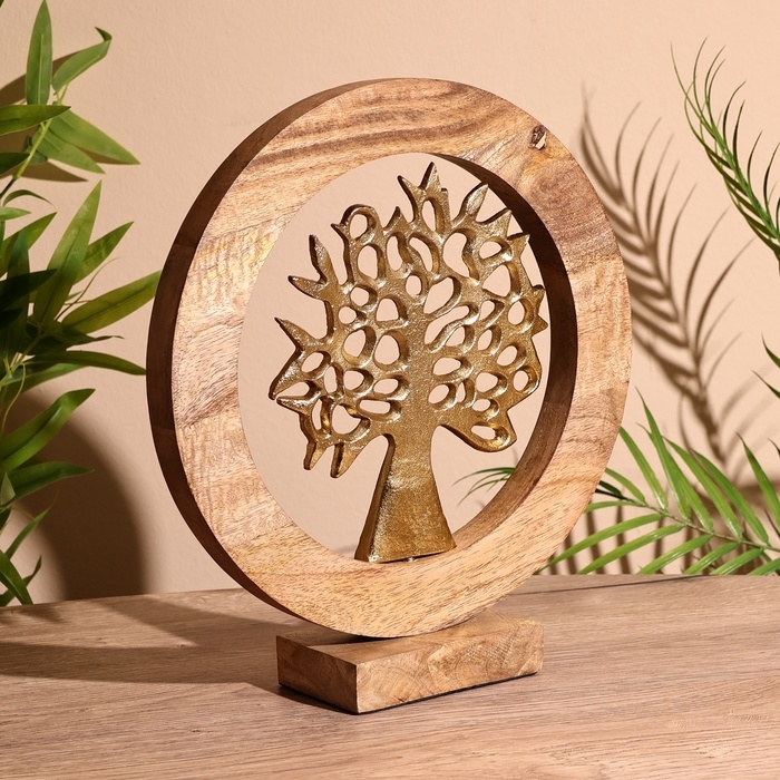 Сувенир интерьерный в деревянном кольце "Дерево" 30х8х33 см