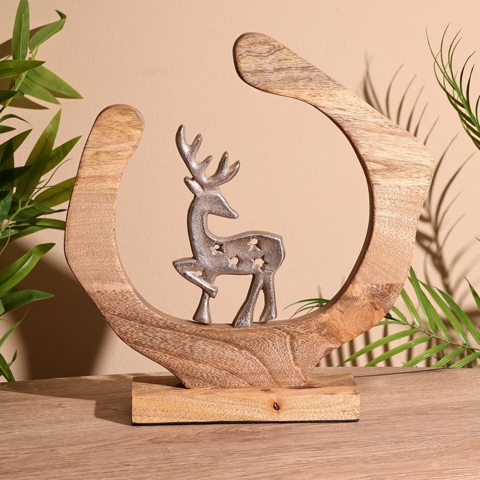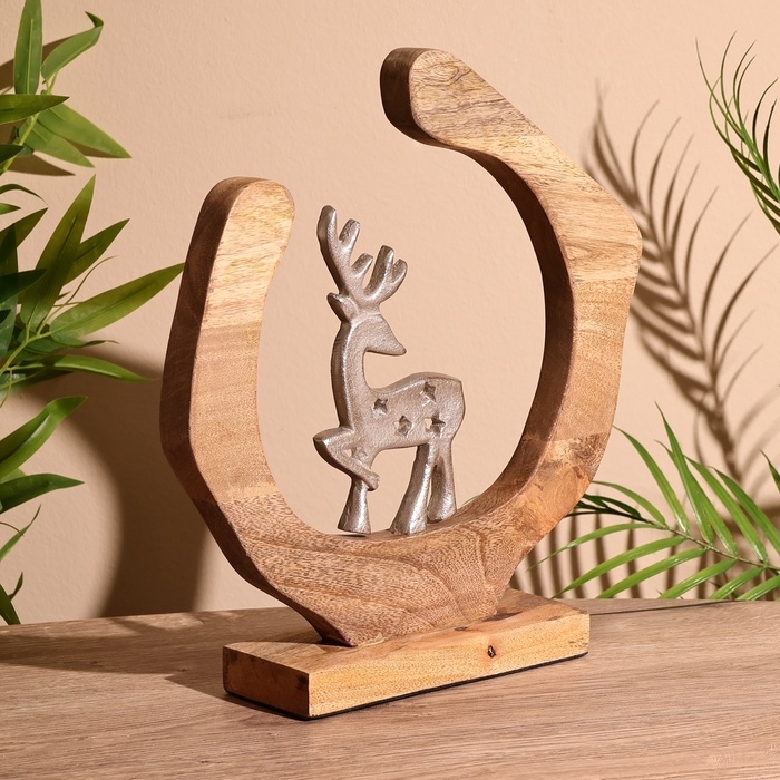 Сувенир интерьерный в деревянном кольце "Оленёнок" 33х8х34 см