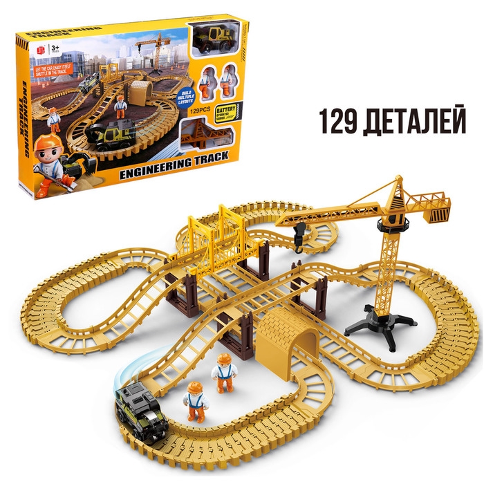 Автотрек «Стройка», с машинкой, краном и фигурками, работает от батареек