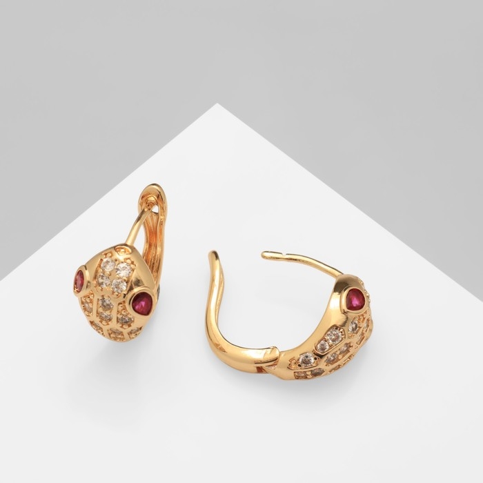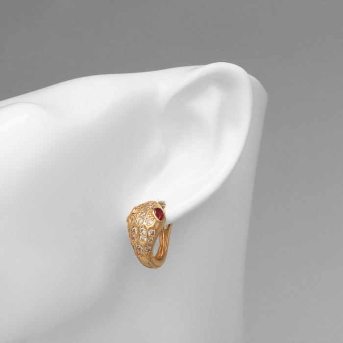 Серьги со стразами «Змея» укус, цвет белый в золоте