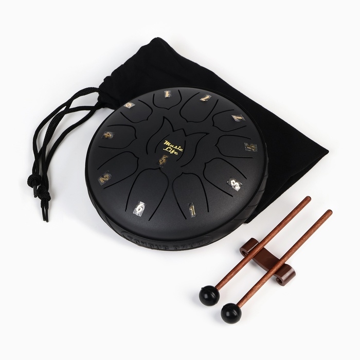 Глюкофон - музыкальный инструмент, черный, 11 лепестков, 17 х 8 см