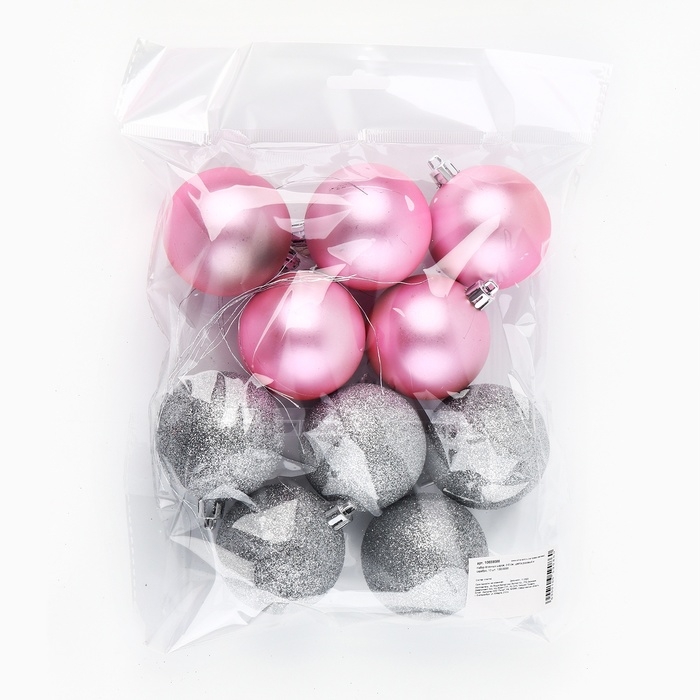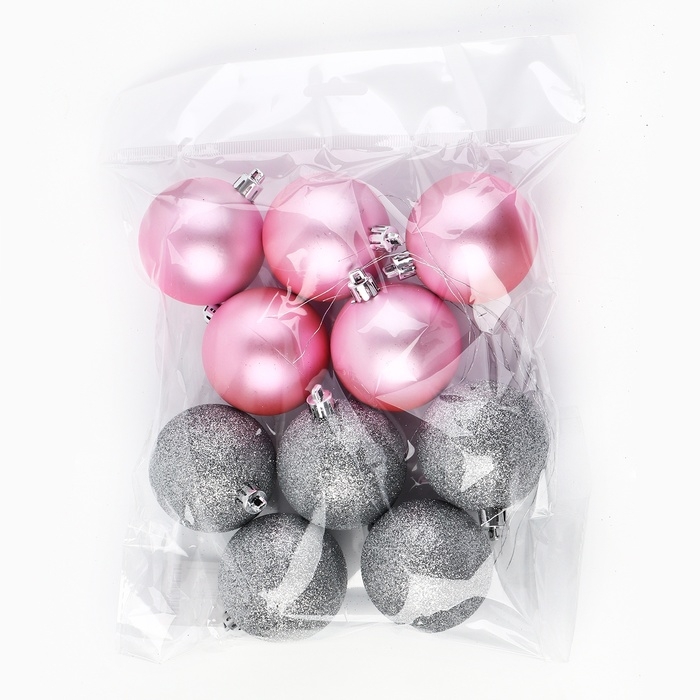 Шары ёлочные новогодние, на Новый год, d=6 см, 10 шт., цвет розовый и серебристый