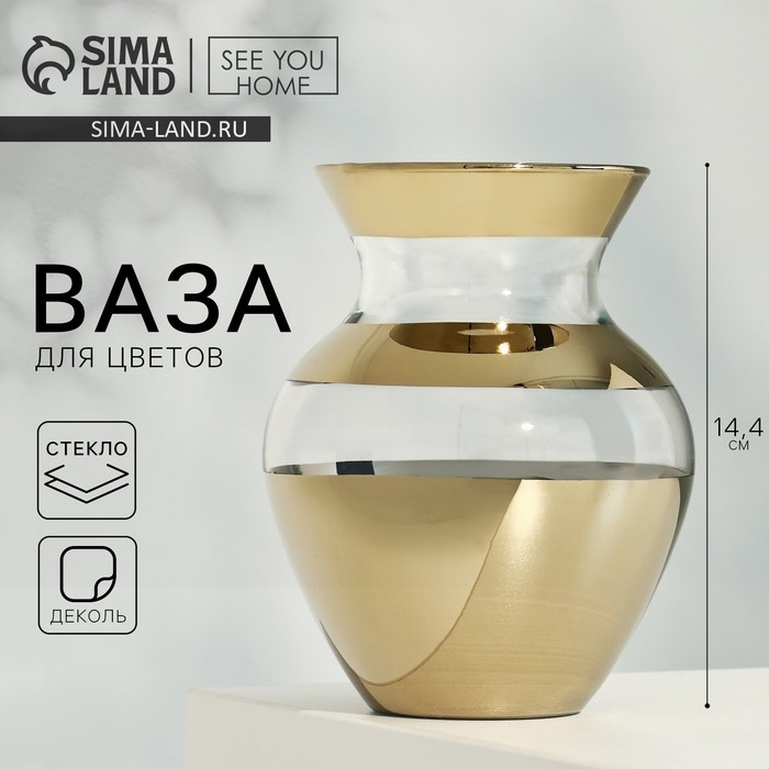 Ваза для цветов «Золото» стеклянная, прозрачная, 14,4 см, 700 мл.