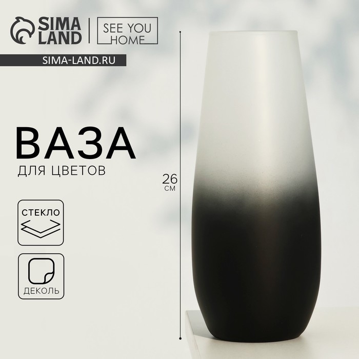 Ваза выполнена в современном дизайне с плавным переходом цвета от черного к белому, что создает эффект глубины и объема.
