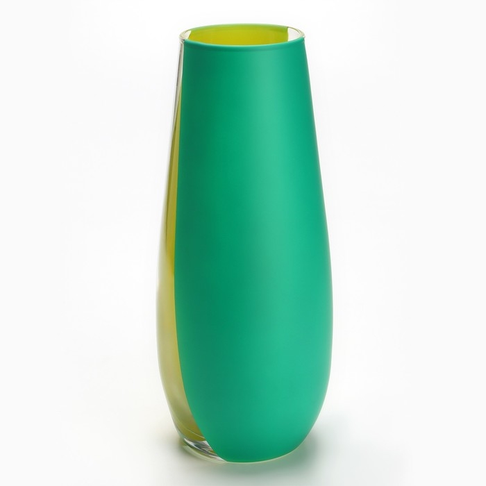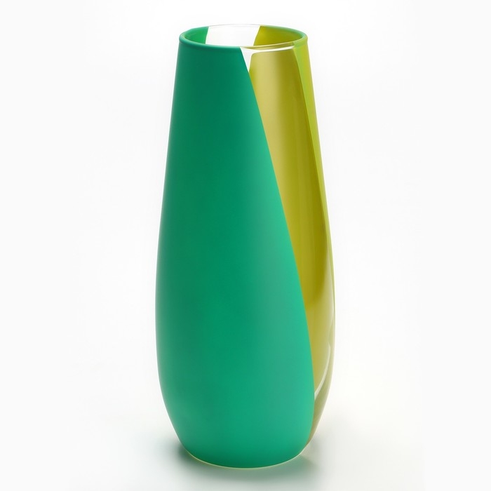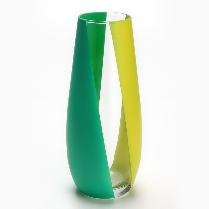 Ваза изготовлена из высококачественного стекла и декорирована яркими полосами зеленого и желтого цвета, что придаст вашему дому особую изысканность.