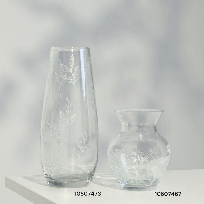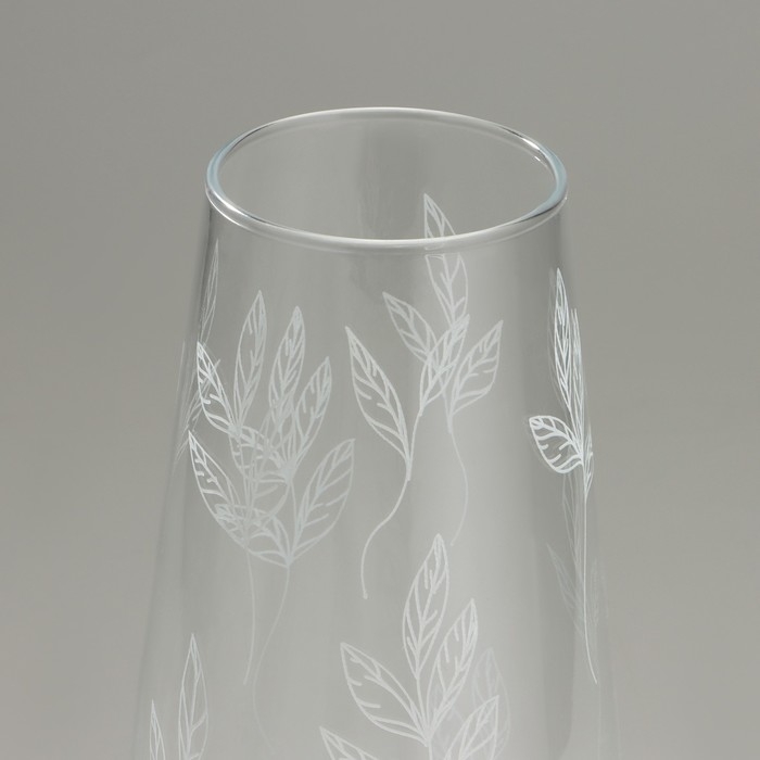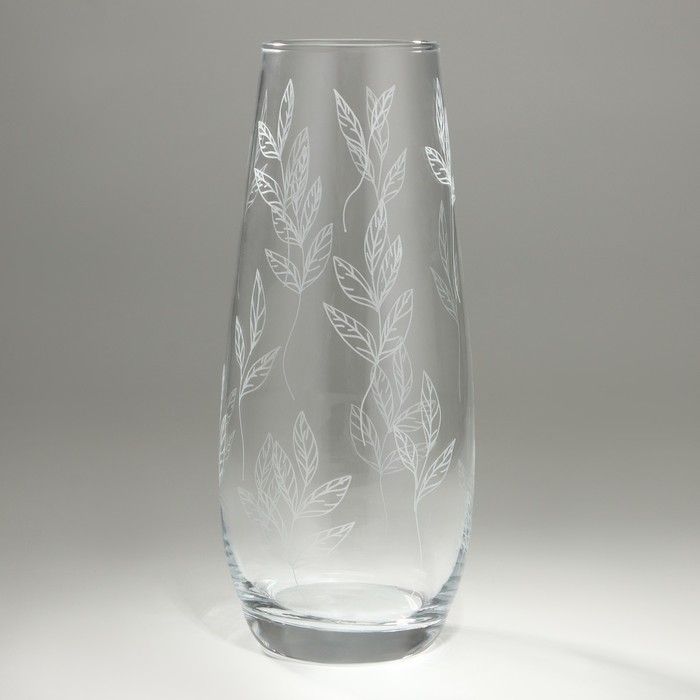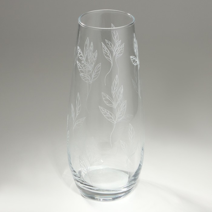 Ваза для цветов «Ботаника» из прозрачного стекла с изящным рисунком в виде белых листьев, станет стильным украшением любого интерьера.