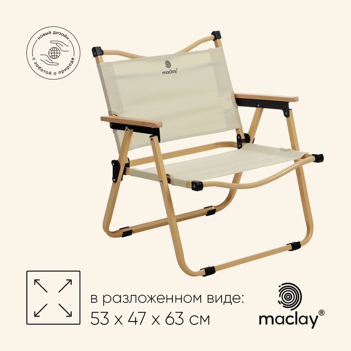 Кресло складное maclay, с подстаканником, 48 х 48 х 76 см, до 100 кг, цвет бежевый