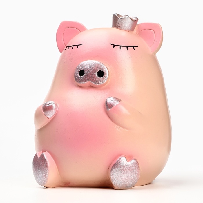 Копилка "Свинка с короной" розовая-серебро, 17см