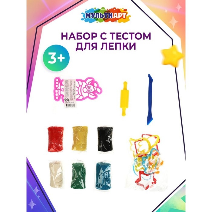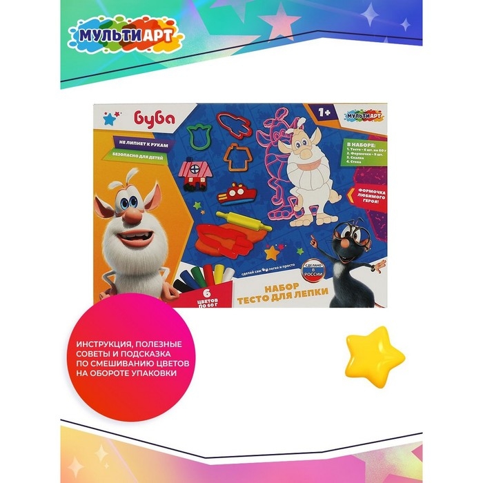 Тесто для лепки «Буба», 6 цветов, 6 формочек