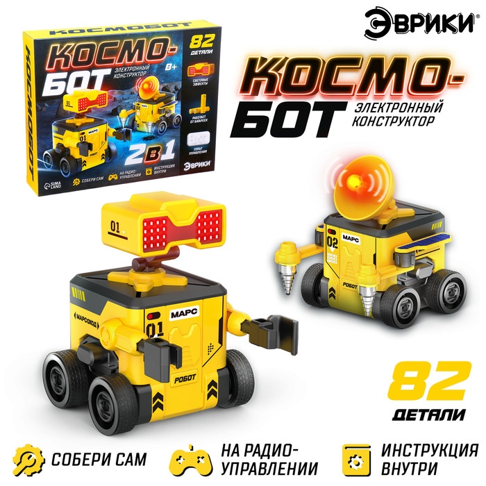 Электронный конструтор «Космобот», 2 в 1, радиоуправляемый, на батарейках, 82 детали