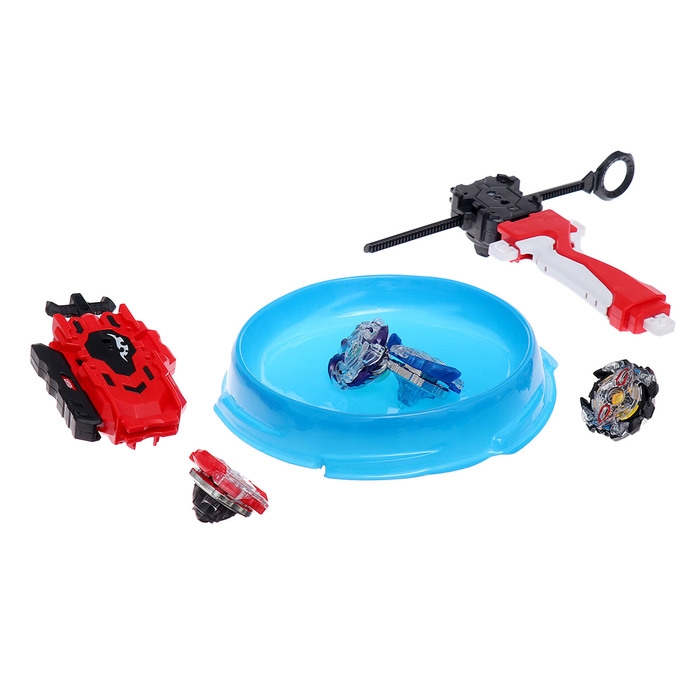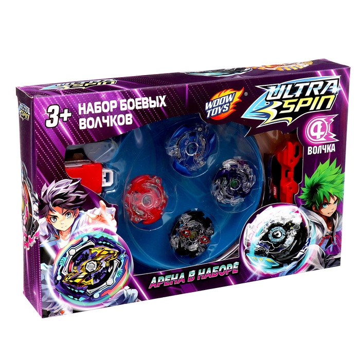 - В набор входят 2 устройства для запуска, 4 волчка, 1 арена.