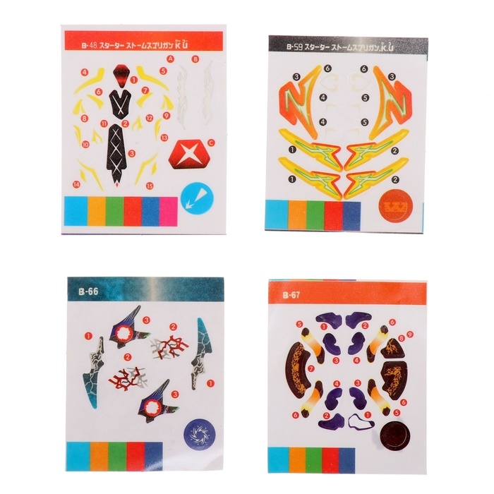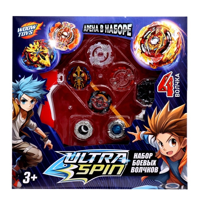 - В набор входят 2 устройства для запуска, 4 волчка, 1 арена.