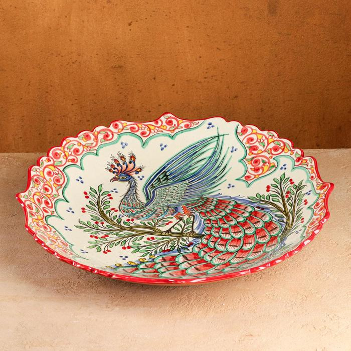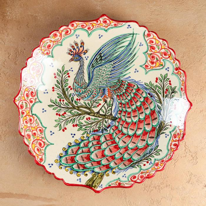 Ляган Риштанская Керамика "Жар птица", 41 см, рифлённый