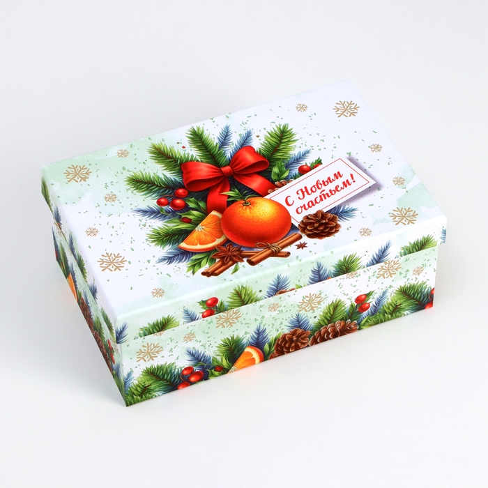 Набор подарочных новогодних коробок 10 в 1 "Мандариновое счастье", 32,5 х 20 х 12,5 - 12 х 7 х 4 см. Новый год