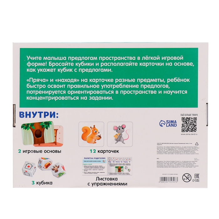 С развивающим набором «Учим предлоги» малыш освоит правильное употребление предлогов, потренируется ориентироваться в пространстве и научится концентрироваться на задании.