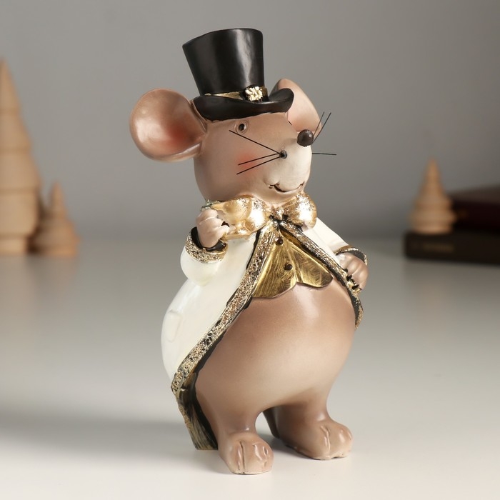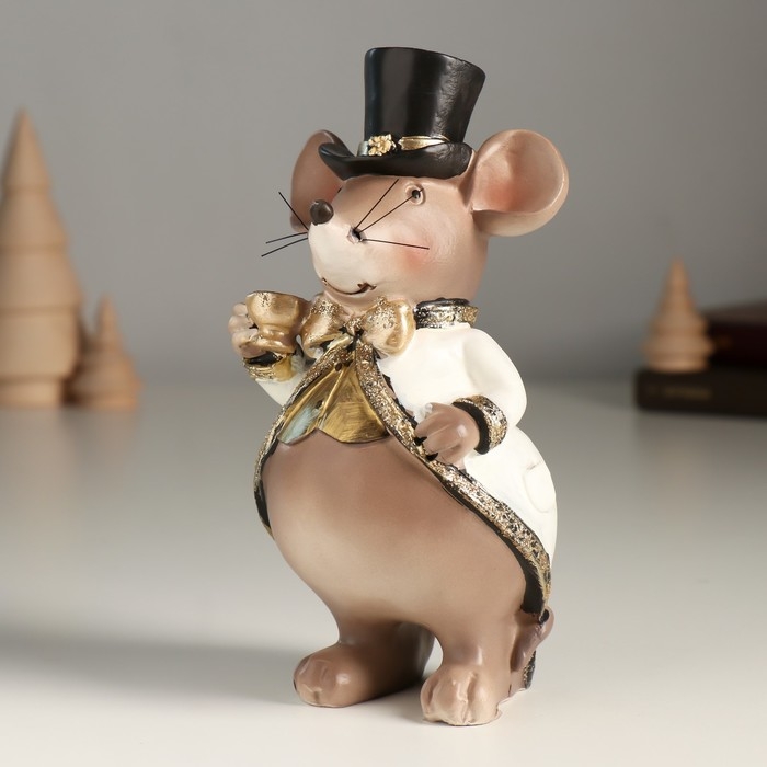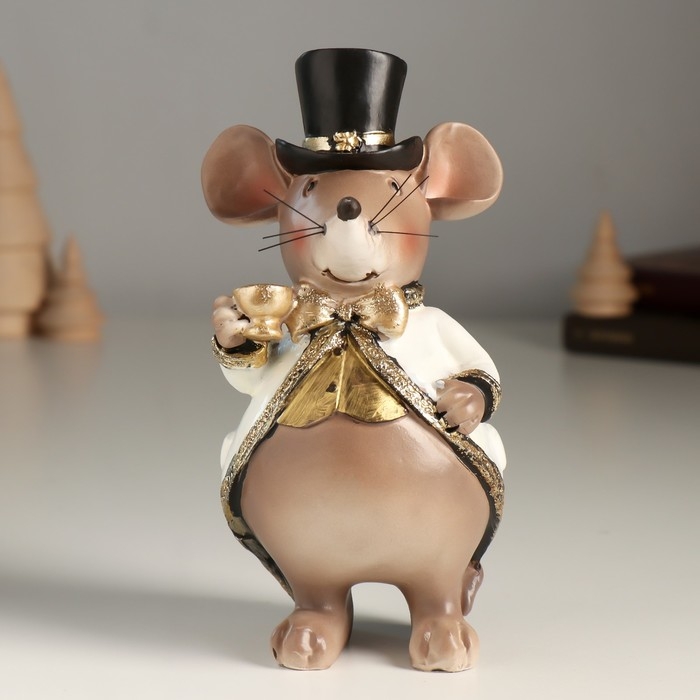 Сувенир полистоун "Мышонок в цилиндре и белом фраке" 8х8х16,5 см