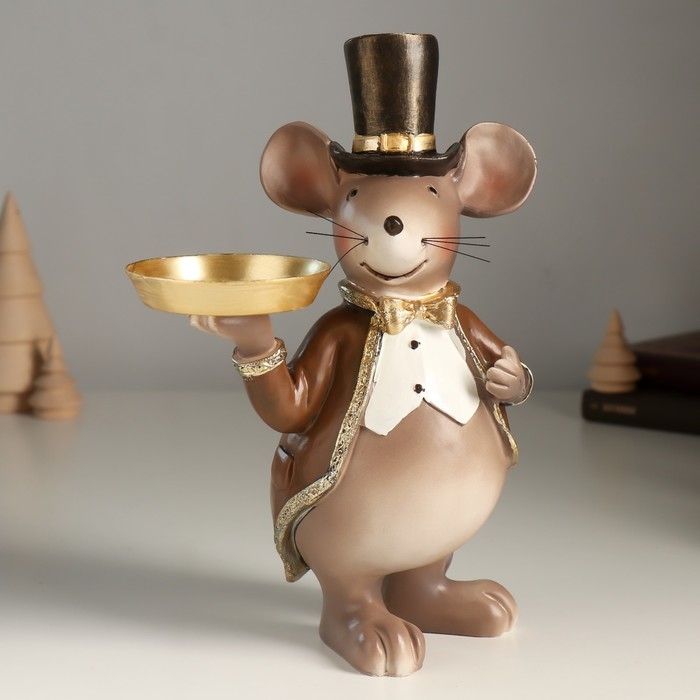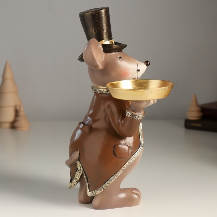 Подсвечник полистоун на 1 свечу "Мышонок в цилиндре и фраке" 17х10х23 см