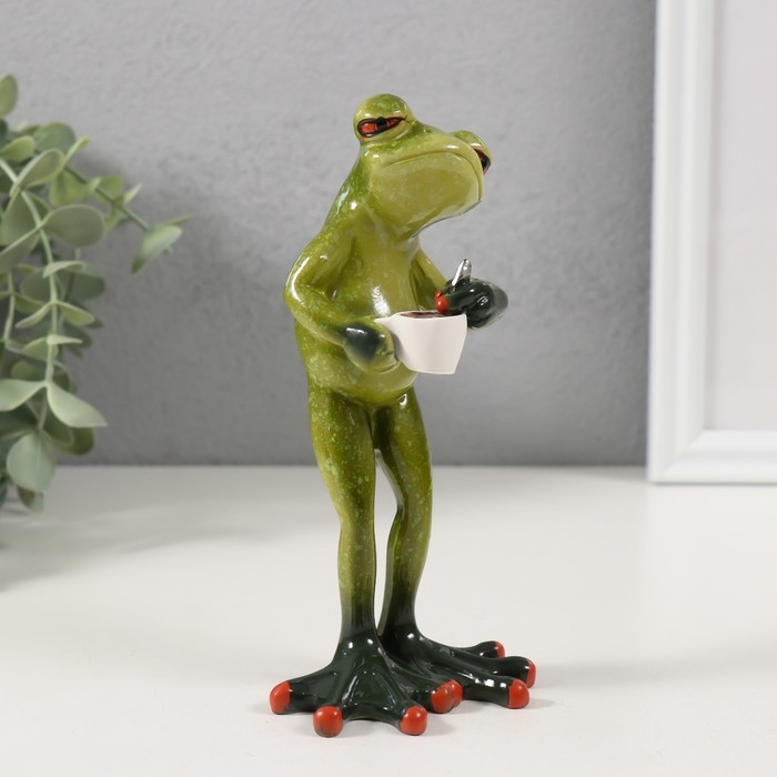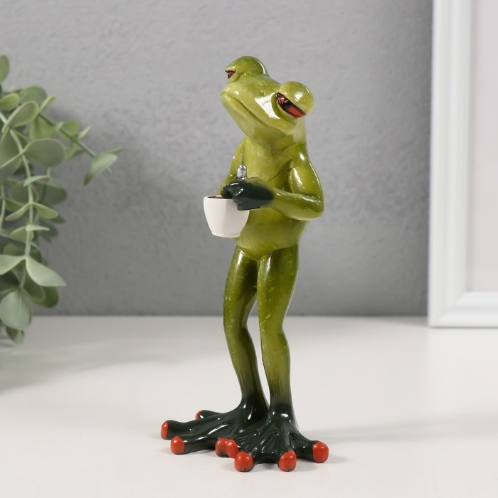 Сувенир полистоун лак "Лягуха заваривает чашечку кофе" 7,5х6,2х15,2 см
