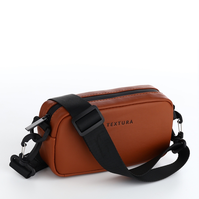 Сумка женская на молнии, TEXTURA, маленький размер, длинный ремень, цвет коричневый