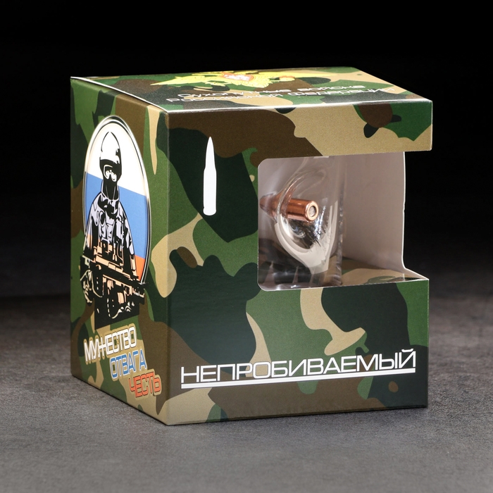 Стакан "Непробиваемый. 23 февраля", для виски, с пулей, 250 мл