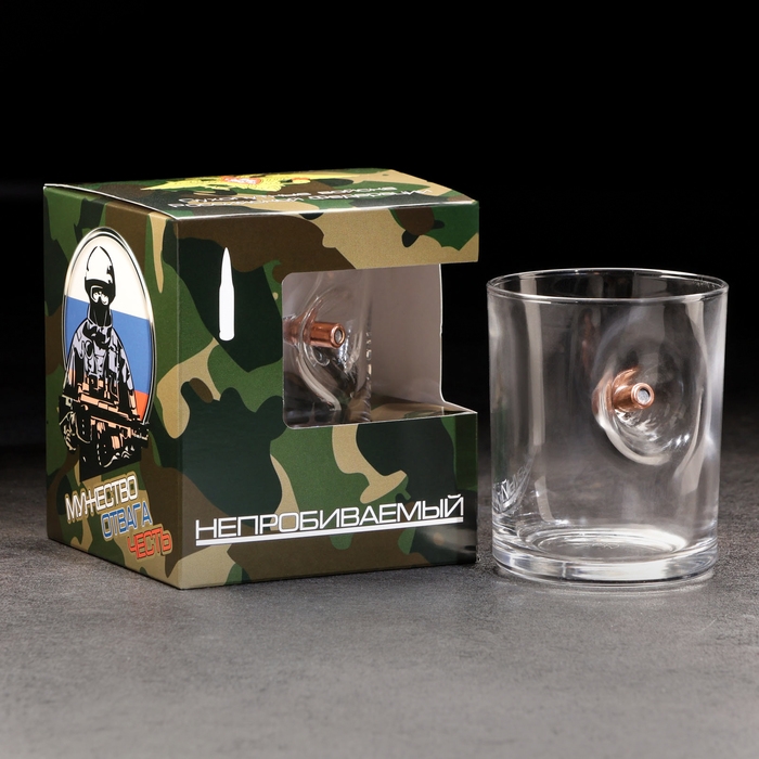 Стакан "Непробиваемый. Сухопутные", для виски, эмблема с пулей, 250 мл