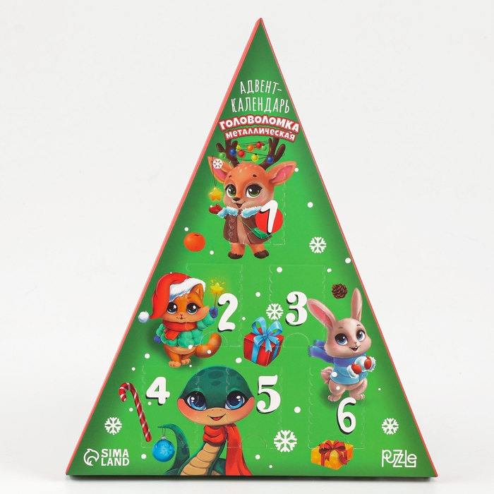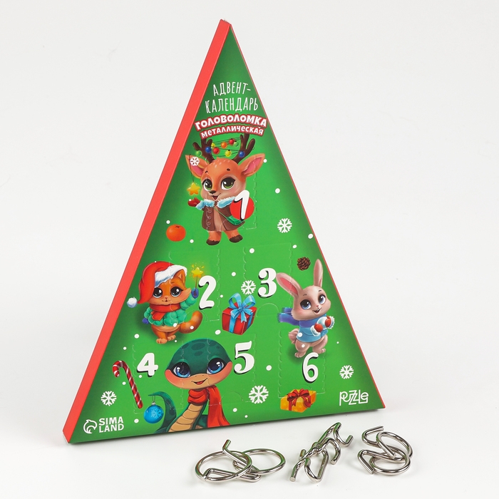 Новогодняя головоломка, металлическая, адвент-календарь, змея «Новогодние зверята»
