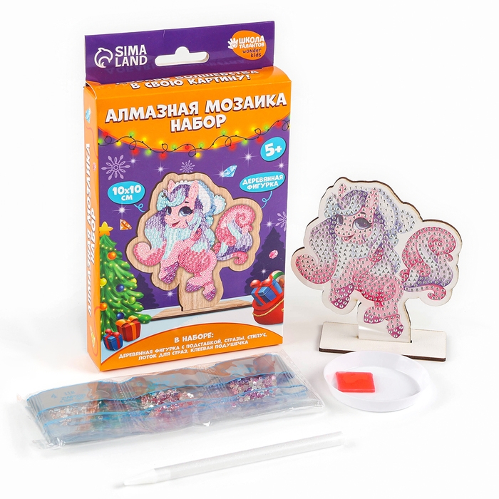 Алмазная мозаика для детей на деревянной фигурке «Единорожка», 10 х 10 см, новогодний набор для творчества