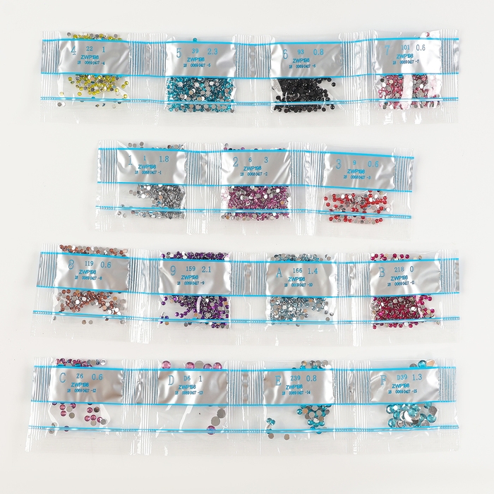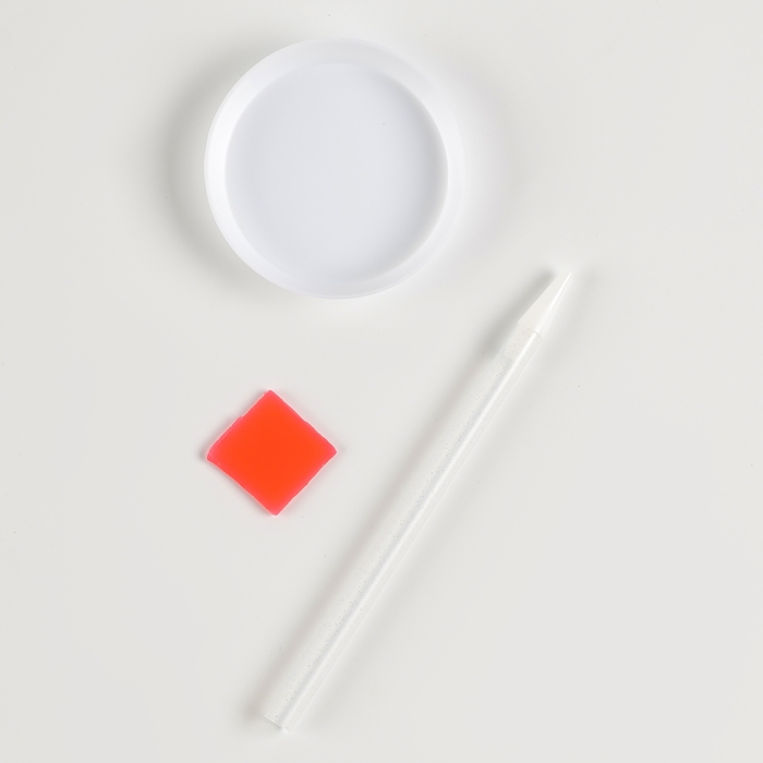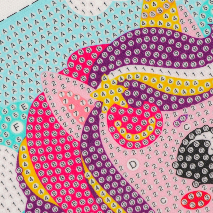- Разложите кристаллики с помощью карандаша по указанной схеме, заполнив полотно. На картине уже обозначены необходимые оттенки. Холст с клеевым покрытием будет надёжно удерживать стразы.