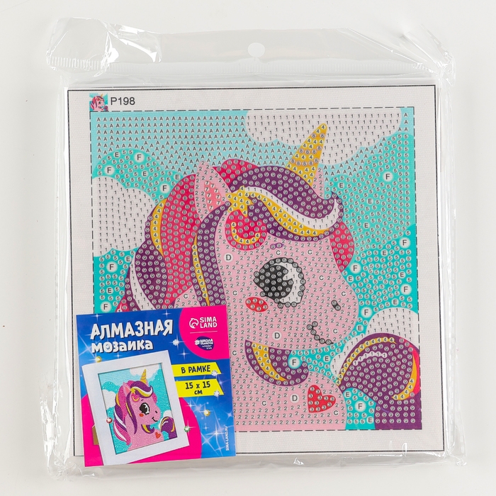 Алмазная мозаика для детей на раме с полным заполнением разнымии стразами «Единорожек», 15 х 15 см