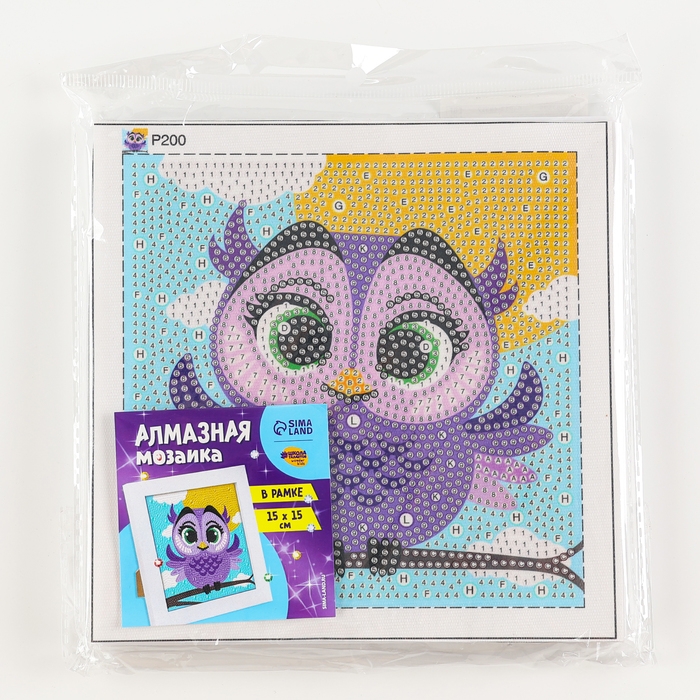 Алмазная мозаика для детей на раме с полным заполнением разнымии стразами «Совушка», 15 х 15 см