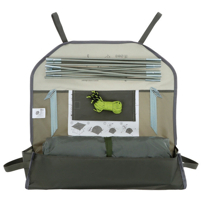 - Тент выполнен из прочного полиэстера с добавлением рипстопа, устойчивого к разрывам и растяжениям.