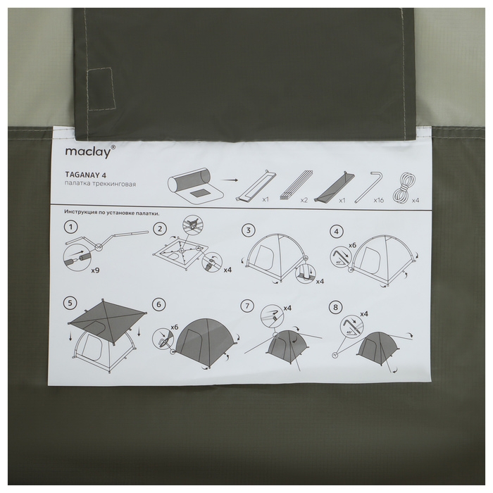 Палатка туристическая, треккинговая maclay TAGANAY 4, 4-местная