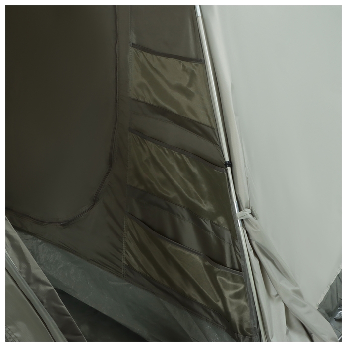 - Пол палатки выполнен из армированного полиэстера и обладает высокой влагостойкостью.