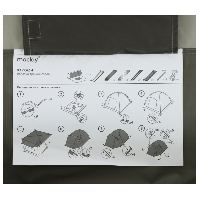 Палатка туристическая, треккинговая maclay KAVKAZ 4, 4-местная, с тамбуром